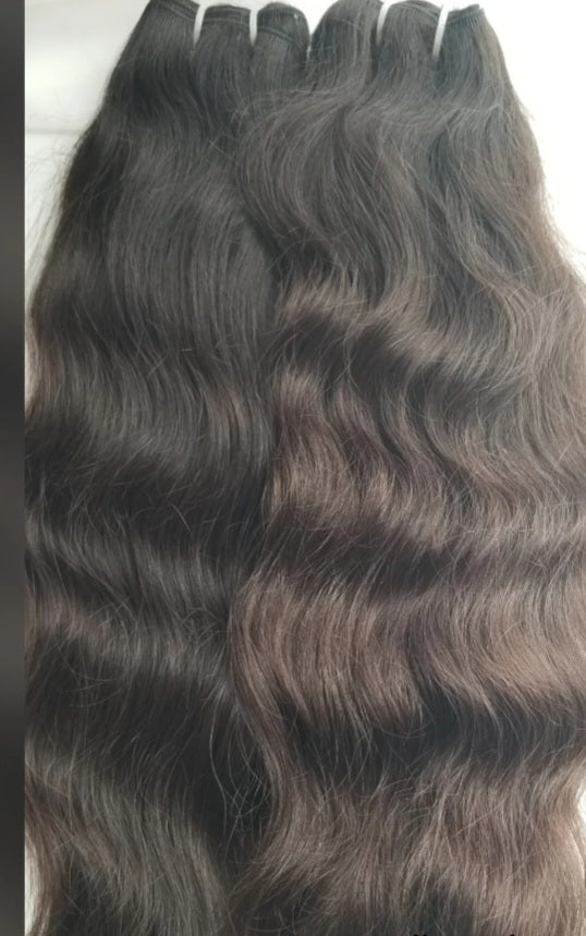 NATURAL WAVY- 100% Authentic Raw Virgin Indian hair. Each bundle is beautifully unique with a natural wavy pattern and comes from a single donor. Patterns will vary from bundle to bundle since all our hair is 100% natural and non-processed.
